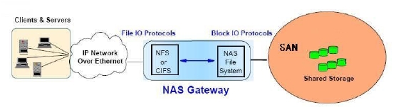 NAS和SAN結合中出現了NAS網關這個部件。NAS網關主要由專為提供文件服務而優